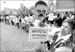 Poco antes de las 11 de la mañana, a bordo de unos ocho microbuses, el grupo comenzó a arribar a la explanada del PRI nacional, ubicado en la avenida Insurgentes. De los gritos pasaron a los empujones y a los golpes al vehículo del coordinador de Comunicación Social de Madrazo Pintado, y al amago de tomar las instalaciones si no eran atendidas.