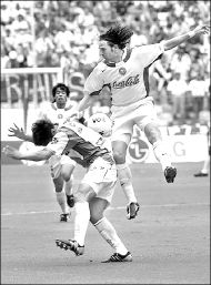 con un tiro de Reinaldo Navia, luego con disparo cruzado de Djalminha y