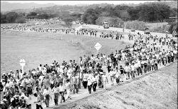 MARCHA EN COLOMBIA  Una larga columna de campesinos indígenas marcharon ayer por la carretera Panamericana, en un tramo colombiano del sur del país, para protestar contra la violencia y la policía. Los organizadores informaron que participaron hasta 50 mil personas en la movilización FOTO AFP