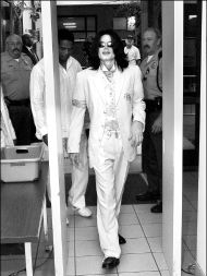 El cantante pop Michael Jackson ingresa a la sede de la Corte de Santa María, California, donde se realiza el juicio en su contra por abuso sexual contra menores. En la audiencia de ayer, la estrella musical dijo que en el pasado trató de comprar la paz en dos casos de abuso, pero ahora, involucrado en otro incidente similar, lamentó no haber peleado aquellas acusaciones ante los tribunales FOTO AFP