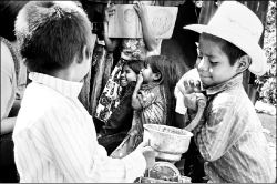 de una enjambre de niños y de algunos jóvenes que, mecate