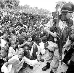 PESAR EN HAITI POR LA MUERTE DE RELIGIOSO  La policía antimotines haitiana trata de controlar a una multitud que se congregó ayer en Puerto Príncipe en el funeral del pastor Moleste Lovinsky, quien era muy popular debido a un programa radial matutino. El religioso murió baleado por desconocidos el pasado 13 de septiembre FOTO REUTERS
