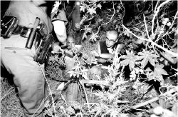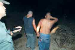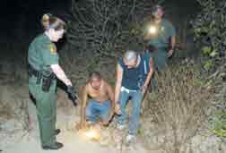 Agentes de la Patrulla Fronteriza detienen a indocumentados ocultos en unos matorrales. La Jornada recorrió la línea y el cementerio donde yacen los restos de centenares de migrantes desconocidos FOTO JOSE ANTONIO LOPEZ