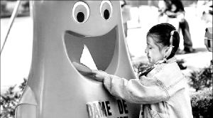 Una niña deposita papel, durante la Feria Ambiental, en la cual se promovió el uso de botes para separar basura orgánica e inorgánica FOTO JOSE CARLO GONZALEZ