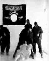 En el video se observa el momento en que uno de los cinco hombres armados y encapuchados corta la cabeza de Armstrong y luego la coloca sobre la espalda del mismo rehén.
