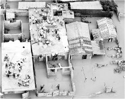 (ONU) para rescatar a muchas personas de los techos de sus casas.