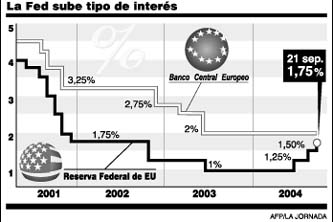 La Reserva Federal estadunidense (Fed, banco central) aumentó este martes en un cuarto de punto porcentual, a 1.75 por ciento, su principal tasa de interés, al tiempo que destacó que la economía recuperó vigor y podrá continuar el incremento de tasas a un ritmo moderado. Este es el tercer aumento desde junio y responde por su magnitud a las expectativas de los analistas. GRAFICA(Afp)