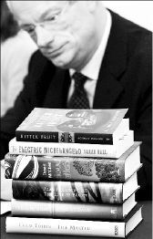FINALISTAS DEL MAN BOOKER  Hon Cris Smith, jurado del Man Booker Prize de este año, observa una pila de libros de los aspirantes al galardón. Las seis obras finalistas son Fruta amarga, de Achmat Dangor; El Miguel Angel eléctrico, de Sarah Hall; La línea de la belleza, de Alan Hollinghurst; Atlas de las nubes, de David Mitchell; El amo, de Colin Toibin, y Me iré a la cama en la tarde, de Gerald Woodward FOTO AFP