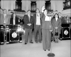 Expresó su rechazo a las componendas y resaltó que su equipo lo integrará con la gente más capaz, independientemente de su filiación política. Reconoció que asume el cargo en una condición difícil, adversa, pero trabajará arduamente, y descartó convertirse en rehén de grupos o partidos, porque "habrá mano dura".