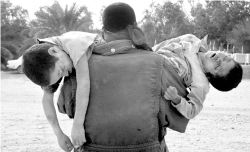 Un iraní carga a sus dos hijos muertos, rumbo