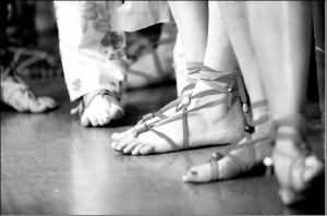 Las modelos, que esperan su turno para ingresar a la pasarela del desfile de Modas de Milán, luciendo diseños de Inés Valentinitsch para la temporada primavera-verano 2005 FOTO AFP