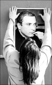 JUICIO JUSTO EN YUKOS  Una simpatizante de Mijail Jodorkovsky, cabeza de la petrolera rusa Yukos, pega su retrato en las afueras de un edificio en Moscú. Miembros del Partido Verde alemán solicitaron al presidente ruso Vladimir Putin que se realice un juicio abierto y transparente, apegado a la ley, en el caso de Jodorkovsky FOTO AFP