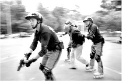 Policías en patines hacen una exibición de cómo operarán en el corredor Reforma, en la ciclopista y en deportivos de la ciudad de México FOTO ALFREDO DOMINGUEZ