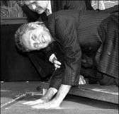 El actor Christopher Walken estampa sus manos en cemento fresco, durante una ceremonia realizada ayer en el Teatro Chino Grauman, en Los Angeles FOTO REUTERS