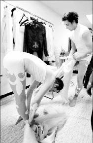 de Monte-Carlo se preparan en los camerinos para su función en la