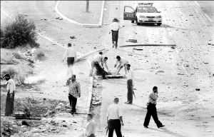 primera explosión, causada por un minibús retacado de explosivos,
