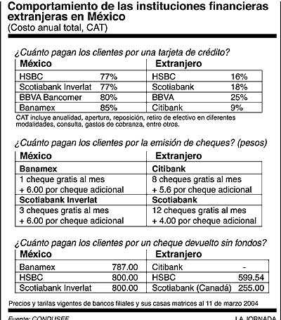 no corresponden a las que los bancos extranjeros asentados en México