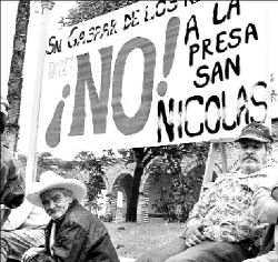 Jalostotitlan, Jal., 16 de octubre. Comuneros y representantes de 40 comunidades rurales de la zona alteña de Jalisco se reunieron hoy en la plaza de San Gaspar para discutir las acciones de rechazo a la construcción de la presa San Nicolás en esta zona, que abastecería de agua a la ciudad de León, Guanajuato.