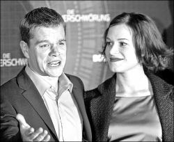 LA SUPREMACIA EN ALEMANIA  Los actores Matt Damon y Franka Potente arrivan a la premier de su más reciente cinta La supremacía Bourne, en Berlín, Alemania, país donde el filme se estrenará comercialmente el próximo jueves 21 de octubre FOTO AFP