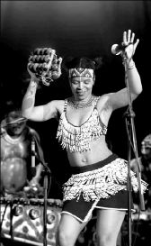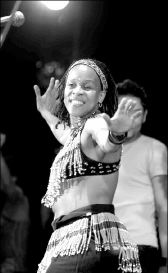 la fuerza musical de tres marimbas sudafricanas, diversos tambores y la