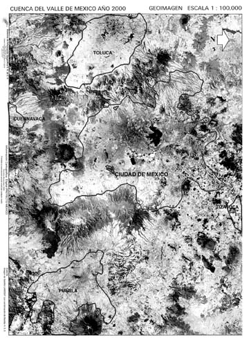 La ciudad de México, en 2000, con mil 550 kilómetros cuadrados. La fotografía satelital permite mostrar el crecimiento de la zona metropolitana y de las urbes que la rodean FOTO CORTESIA SIGSA