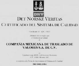 EN SU PAGINA WEB, la Compañía Mexicana de Traslado de Valores, SA de CV (Cometra) ostenta con orgullo el certificado ISO 9002, que le otorgó en octubre de 2000 el despacho Det Norske Veritas (DNV) por su "profesionalismo, procesos de calidad total, excelencia operativa y calidad de todos sus procesos". Una de dos: o los sitios de DNV en Internet son muy desorganizados y deficientes y la empresa certificadora no merece sus propios certificados, o bien el documento exhibido por Cometra en su página es chocolate. Este columnista realizó una búsqueda exhaustiva por nombre, por país y por giro, así como en la lista de más de 500 clientes de DNV, y no halló ni una sola referencia a Cometra. Se me ocurre que, si el papel de referencia no es falso, los directivos de ésta tendrían que reclamarle la omisión a los de DNV.