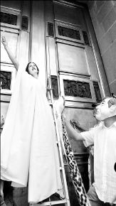Vestida de blanco, cabellera negra y suelta, La Justicia llegó ayer al portón de la Suprema Corte de Justicia de la Nación (SCJN) para lavar con un cepillo de dientes "las cochinadas" de Mariano Azuela, presidente de ese tribunal.
