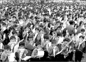 Más de 3 mil niños tocaron la zampoña (tradicional instrumento boliviano) en La Paz, con lo que rompieron un récord Guinness FOTO AFP