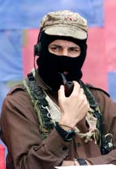 El subcomandante Marcos en las instalaciones de la Escuela Nacional de Antropología, en marzo de 2001 FOTO LA JORNADA