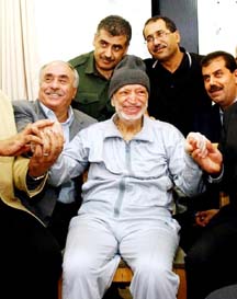 Arafat rodeado por su equipo de médicos, en Ramallah. Las noticias