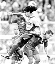 en una lució Guillermo Ochoa ante un cabezazo de Israel López,
