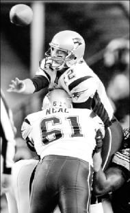 Patriotas tuvo que depender por completo de Brady, quien concretó dos envíos anotadores con David Givens: de dos yardas en el segundo cuarto y de 23 en el cuarto, en tanto el pateador Adam Vinatieri convirtió dos goles de campo de 43 yardas en el primero y de 25 en el tercero.