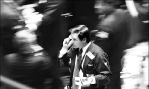 Corredor en la bolsa de valores de Nueva York donde el índice Dow Jones avanzó 1.75 por ciento para ubicarse en 10 mil 314.76 puntos, mientras el Nasdaq ganó 1.96 por ciento FOTO AFP