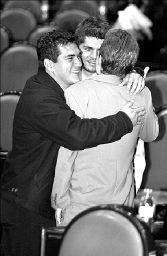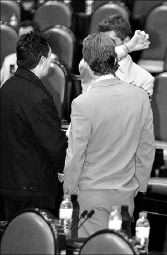 de espaldas) muestran sus afectos mutuos durante la sesión de ayer