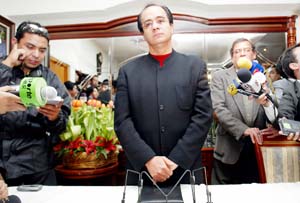 Luego de conocer que un juez del Reclusorio Sur ordenó su captura por presunta responsabilidad en los delitos de lavado de dinero y promoción de conductas ilícitas, el ex asambleísta aseguró que en el momento que sea notificado oficialmente se pondrá a disposición de la autoridad. Afirmó que el mandato judicial es "un error" porque obedece a una decisión política y no jurídica. Horas antes, el indiciado dio a conocer la existencia de un nuevo video donde el empresario Carlos Ahumada y un personaje político, cuyo nombre no reveló, se confabulan para "atacar el proyecto del gobierno capitalino". Al cierre de la edición permanecía en su domicilio FOTO CARLOS RAMOS MAMAHUA