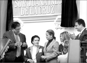 HOMENAJE A LA DECIMA MUSA  El diputado Mauricio López, la escritora Griselda Alvarez, las diputadas Lorena Villavicencio y María Rojo, y el diputado Jose Espina en el recinto de Donceles y Allende, durante la sesión solemne para develar la inscripción con letras de oro de Sor Juana Inés de la Cruz FOTO GUILLERMO SOLOGUREN
