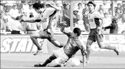 (84) mediante un cabezazo, mientras el portero Pérez y Pablo Campos