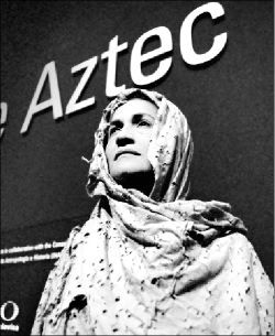a la entrada de la magna exhibición El imperio azteca apareció
