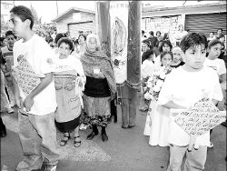 Pobladores de San Juan Ixtayopan, Tláhuac, realizaron ayer una misa en memoria de los dos agentes de la PFP linchados en la noche del martes 24 de noviembre FOTO JESUS VILLASECA