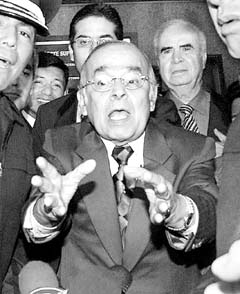 Hugo Quintana, titular de la Suprema Corte de Justicia del país andino, dialoga con la prensa luego de que la mayoría parlamentaria, adepta al presidente Lucio Gutiérrez, destituyó a 27 de los 31 magistrados del máximo tribunal. La decisión fue calificada de inconstitucional, pero los diputados alegaron que los jueces estaban "en funciones prorrogadas" FOTO AFP