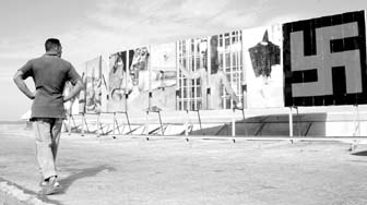Personal de la Sección de Intereses de Washington en La Habana se encontró la mañana de este viernes con enormes reproducciones de imágenes de iraquíes torturados en la cárcel de Abu Ghraib, la leyenda "Fascistas made in USA" y la esvástica nazi. La acción constituye la respuesta de las autoridades cubanas a la decisión de la misión estadunidense de adornar su edificio con mensajes alusivos a los 75 disidentes presos en la isla FOTO AFP