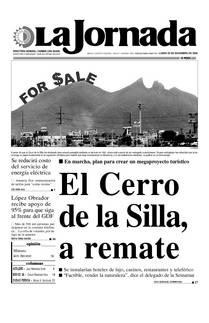 A pesar de que el Cerro de la Silla fue declarado área natural protegida mediante un decreto en 1991, ahora está a punto de ser entregado a particulares. Grupos ecologistas han advertido que la zona juega un papel fundamental en la regulación climática para impedir que haya inundaciones en Monterrey y en las poblaciones aledañas. La gráfica es un fotomontaje FOTO LA JORNADA