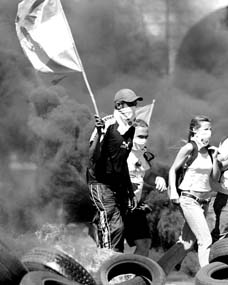 Activistas de izquierda marchan sobre barricadas ardientes que ayer bloquearon el tránsito en el centro de Buenos Aires, durante el tercer aniversario de la rebelión popular que llevó a la caída del entonces presidente Fernando de la Rúa. Por otra parte, el gobierno destituyó al embajador en La Habana, Raúl Taleb, en el marco de la crisis diplomática provocada por el caso de la disidente cubana Hilda Molina FOTO REUTERS