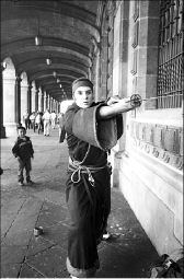 Un teatrero realiza una exhibición frente al edificio del Gobierno del DF, en el Zócalo de la ciudad de México FOTO JULIO REYNA QUIROZ