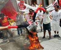 Manifestantes quemaron una figura del presidente George W. Bush durante la marcha que cerr� Foro Social Mundial en Porto Alegre FOTO Afp