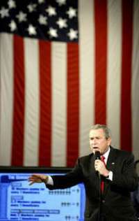 El discurso de anoche en realidad se centraba en dos grandes temas: la próxima etapa de la llamada guerra contra el "terrorismo" (ahora renombrada como la misión de promover la libertad), y la "reforma" del estado de bienestar social estadunidense empezando con el Seguro Social. Así, de la misma manera que impuso una nueva doctrina de política extranjera