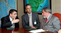 El ministro de Relaciones Exteriores de Cuba, Felipe P�z Roque (izquierda), conversa en Brasilia con el presidente Luiz Inacio Lula da Silva, ayer durante un encuentro en el Palacio de Planalto. El canciller de la isla caribe�ealiza una visita oficial de dos d� a Brasil FOTO AFP