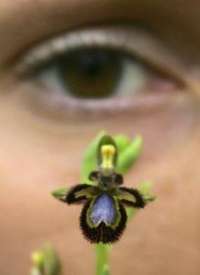 Christine Buchmann, horticultora de Kew Gardens, en Londres, posa con una orqu�a Ophrys ciliata, durante el inicio del Festival Anual de la Orqu�a, ayer. El ejemplar aqu�ostrado semeja a una abeja, lo que atrae a las abejas machos para propiciar la polinizaci�OTO AFP