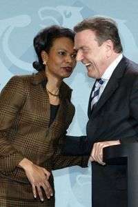 Condoleezza Rice, secretaria de Estado estadunidense, y Gerhard Schroeder, canciller alem� durante una conferencia de prensa conjunta en Bel� FOTO Reuters