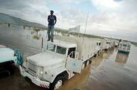 Trabajadores del programa de alimentaci�e la ONU, varados cerca de Gonaives, Hait�la zona m�afectada por el hurac�Jeanne en septiembre pasado FOTO AFP